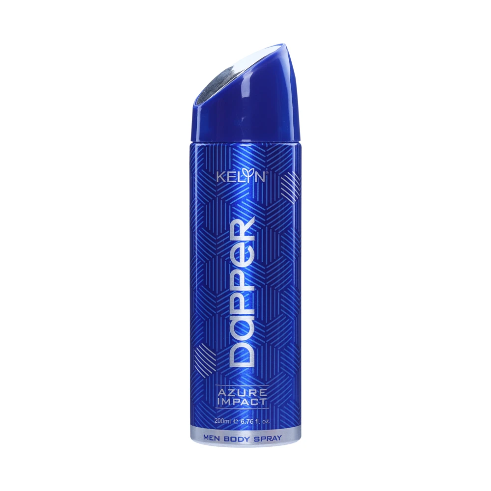 Kelyn Dapper Azure Impact Men Body Spray 200 ml is a sophisticated fragrance designed to leave a lasting impression. It features a crisp blend of sparkling citrus and aquatic top notes, transitioning into a fresh aromatic heart of lavender and mint, and rounded off with a clean, woody-musk dry-down. This premium spray offers a refined yet energizing scent that carries confidence with every spritz. Perfect for daily wear, formal occasions, or special evenings—it keeps you feeling polished and fresh all day long. ✅ Key Benefits: